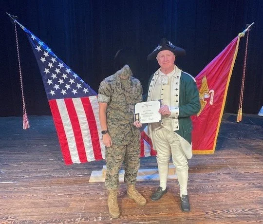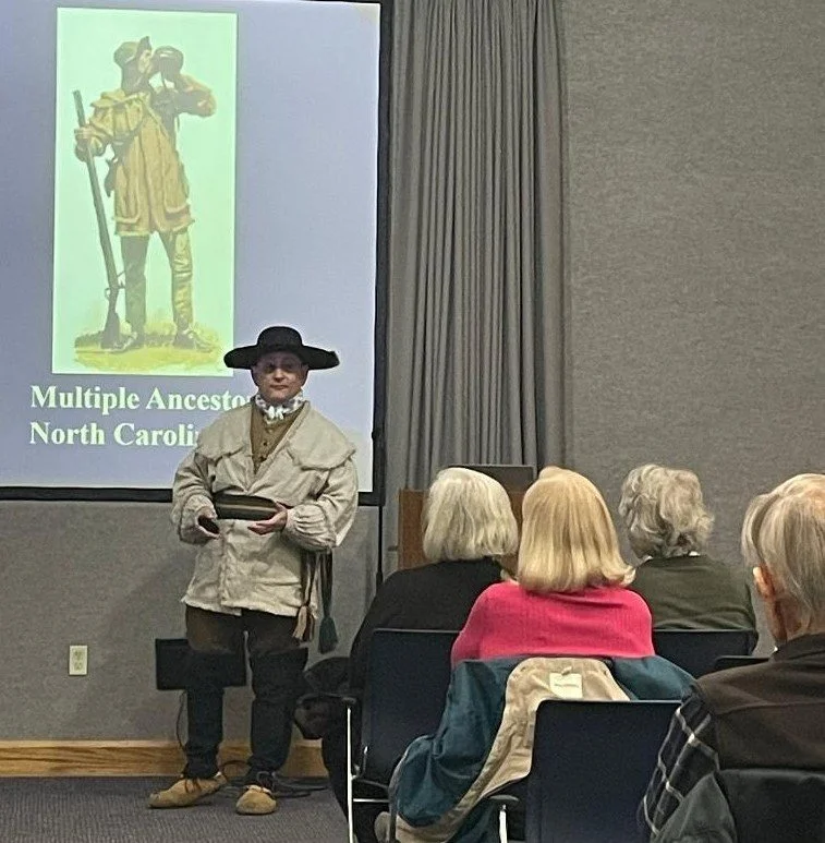 Garry Linton (dressed in Militia attire) of the Blue Ridge Chapter, NCSSAR provided a program on " George Washington, his Compatriots, and the Nascent American Revolution" at the Hendersonville, NC Library on